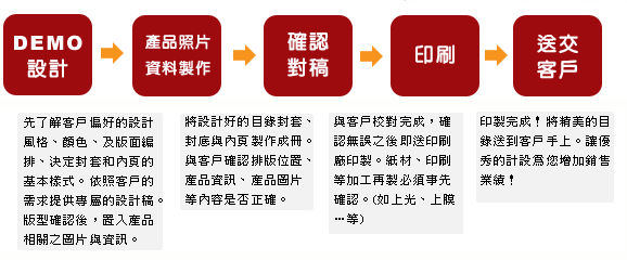 型錄設計不僅是將所銷售的產品印刷在紙上而已,更是表現出公司形象及產品質量的重要媒介。優質的『型錄設計』不僅能使讀者對公司印象有效的宣傳產品資訊,是行銷作業中不可獲缺的最佳工具。讓金 典專業且資深的設計團隊為您設計出最適合貴公司的『紙上行銷』;讓優秀的型錄設計為您在商場上搶 得先機,大大增加銷售業績! 專業服務項目: